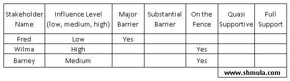 • For a given non-influential stakeholder that is a major barrier, we need to choose whether we should spend time convincing that person to support?